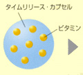 体からすぐに排泄されてしまうビタミンをいかに長く体内に留めておけるかがポイント。タイムリリース加工は特殊な技術でビタミンの体内への吸収時間を調節します。