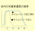 タイムリリース加工では、栄養素をある程度の固まりとしたタイムリリースカプセルから時間をかけて徐々に溶け出すように工夫されています。